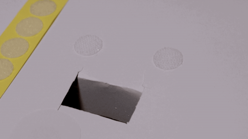 또한, 박스를 블랙보드나 액자 뒤에 세워두면 안정적으로 놀이가 가능하고, 사용 후에는 벗겨서 정리할 수 있어 깔끔합니다.